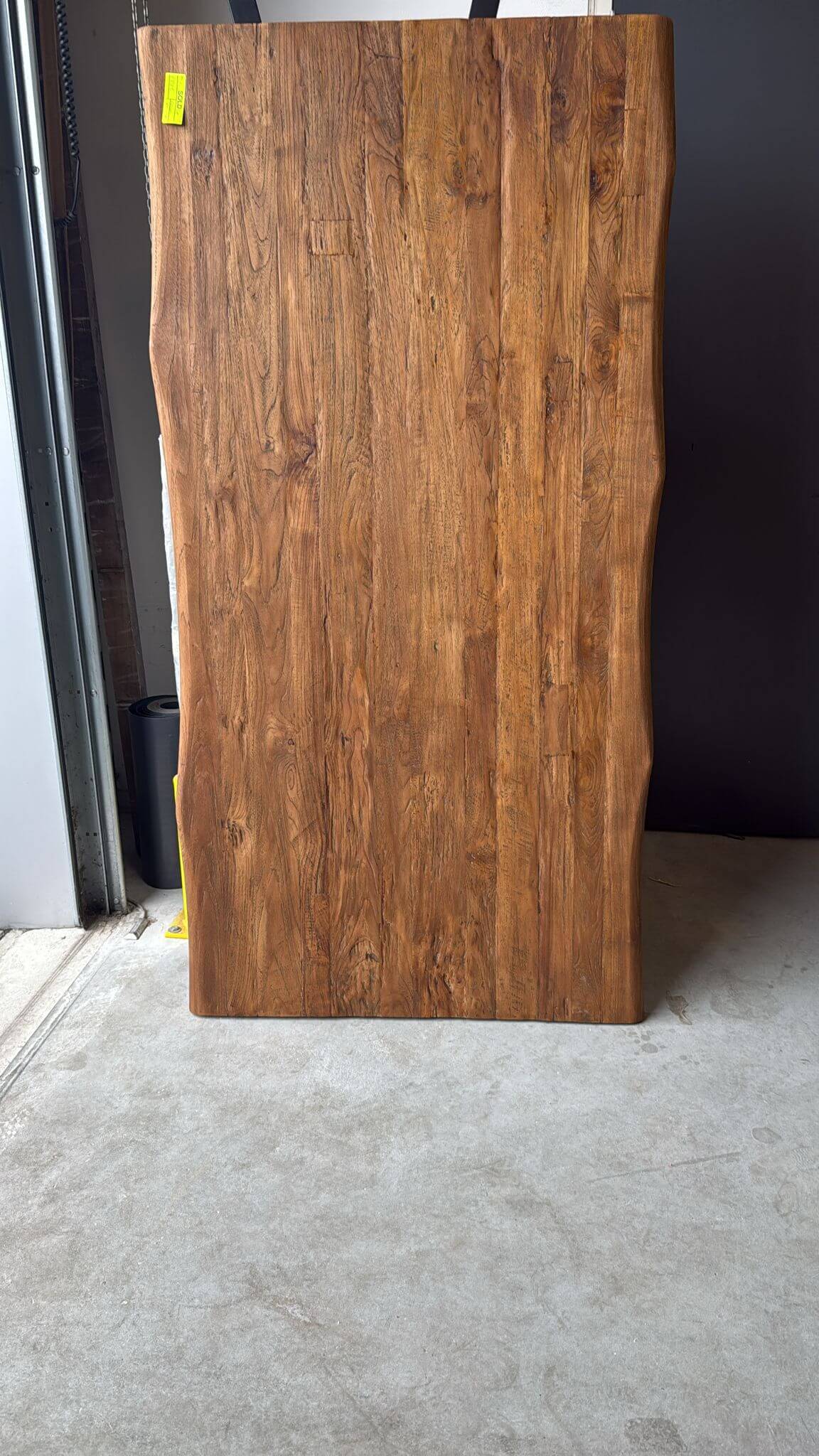 Massief tafelblad met aan de zijkanten de buitenkant van de boom. Gemaakt